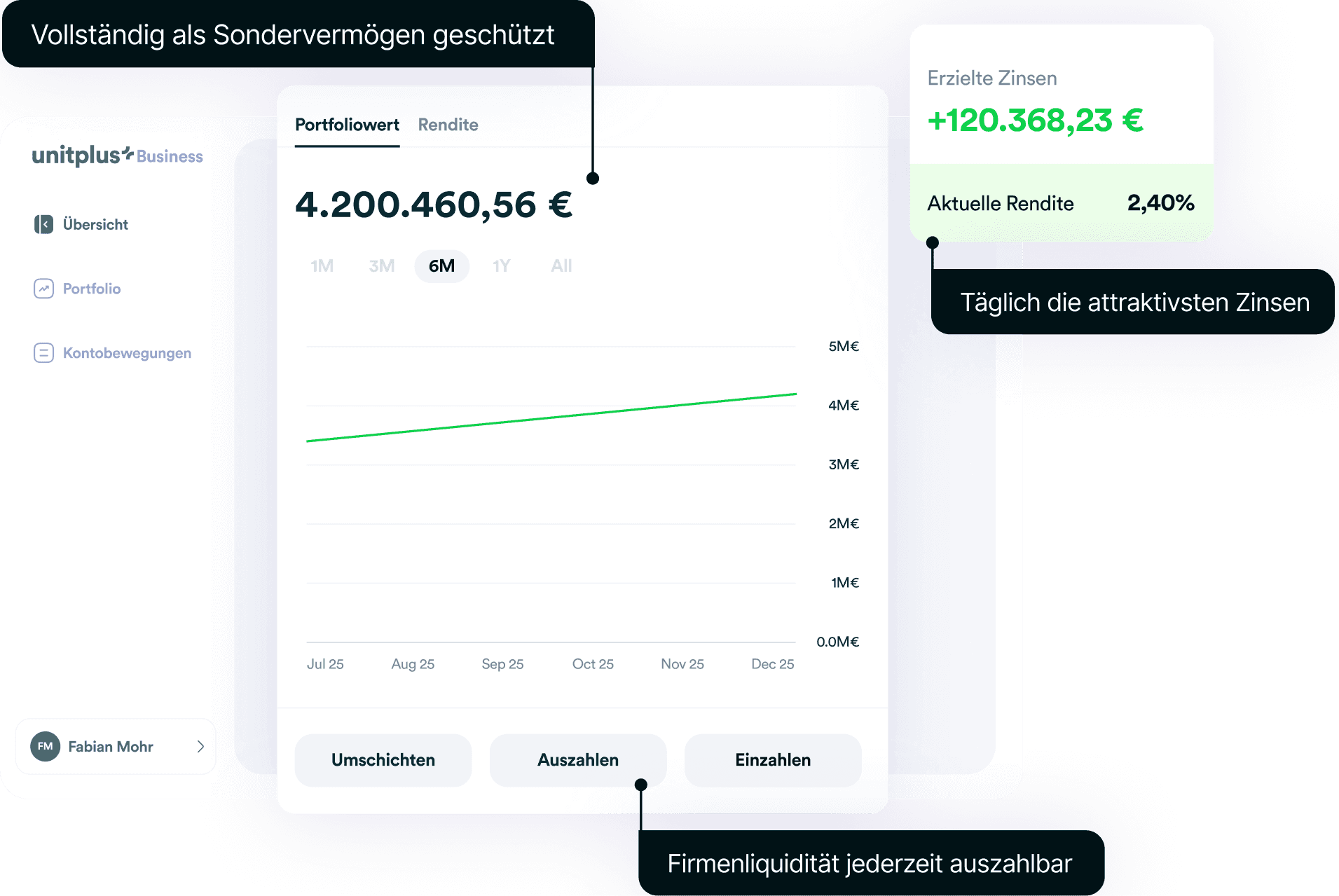 UnitPlus Business vereint für uns Flexibilität, Transparenz und attraktive Renditen – eine ideale Lösung für die Verwaltung von Surplus Cash.