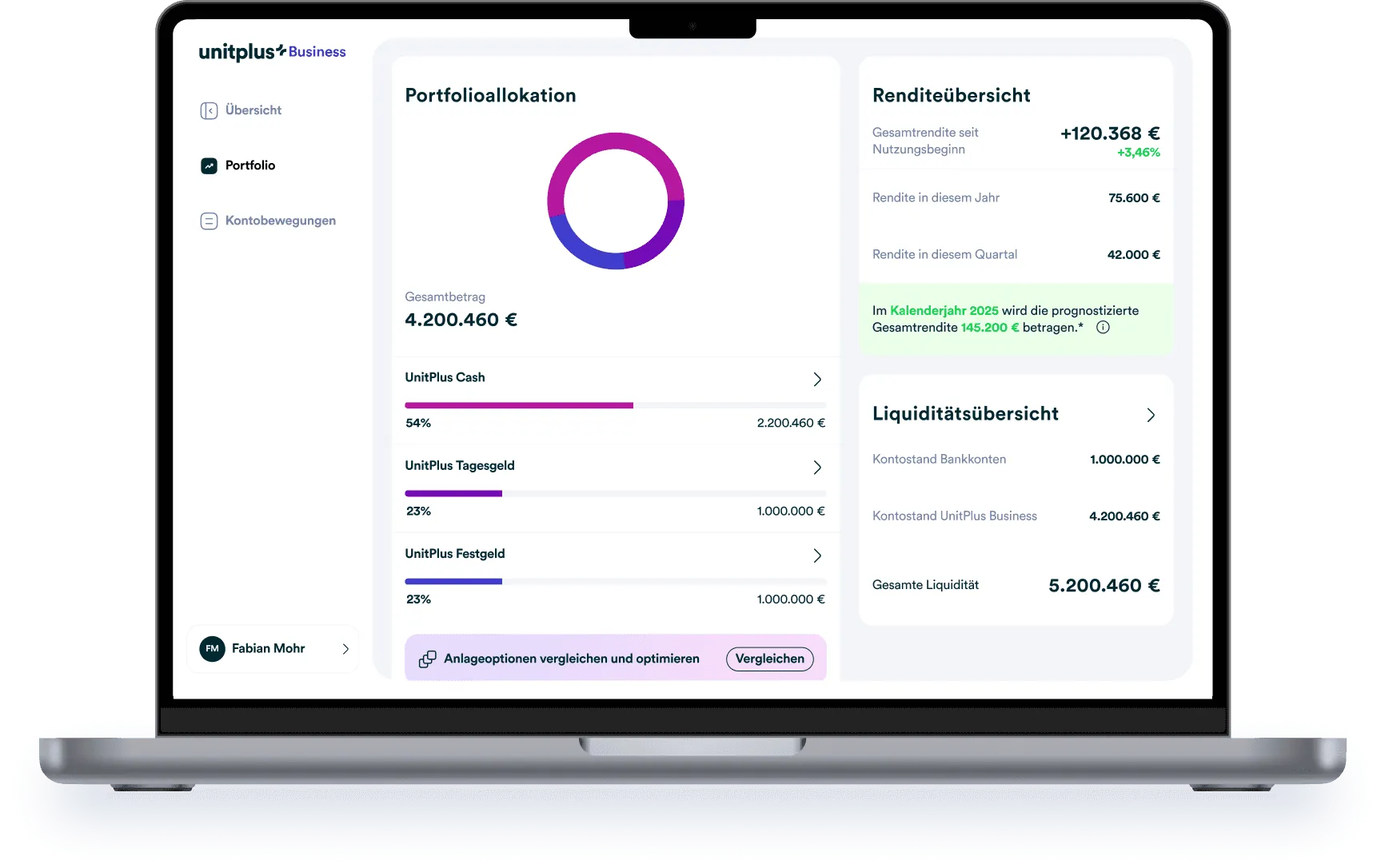 Mit UnitPlus Business wird die Liquidität Ihrer Holding zum Ertragsmotor
