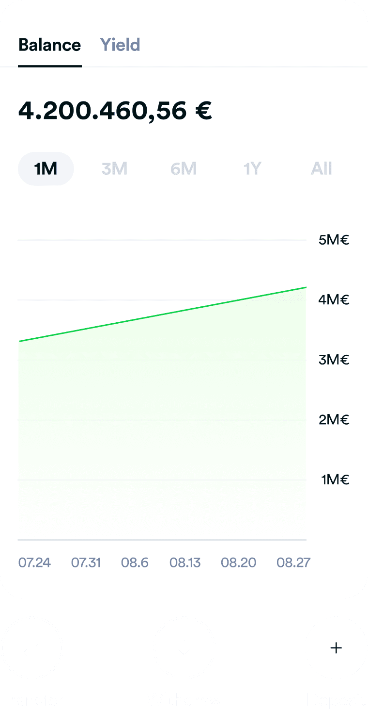 From day one, your liquidity generates attractive daily interest – fully transparent and easy to track. Your dashboard shows current yields, credited interest, and your liquidity status at a glance.