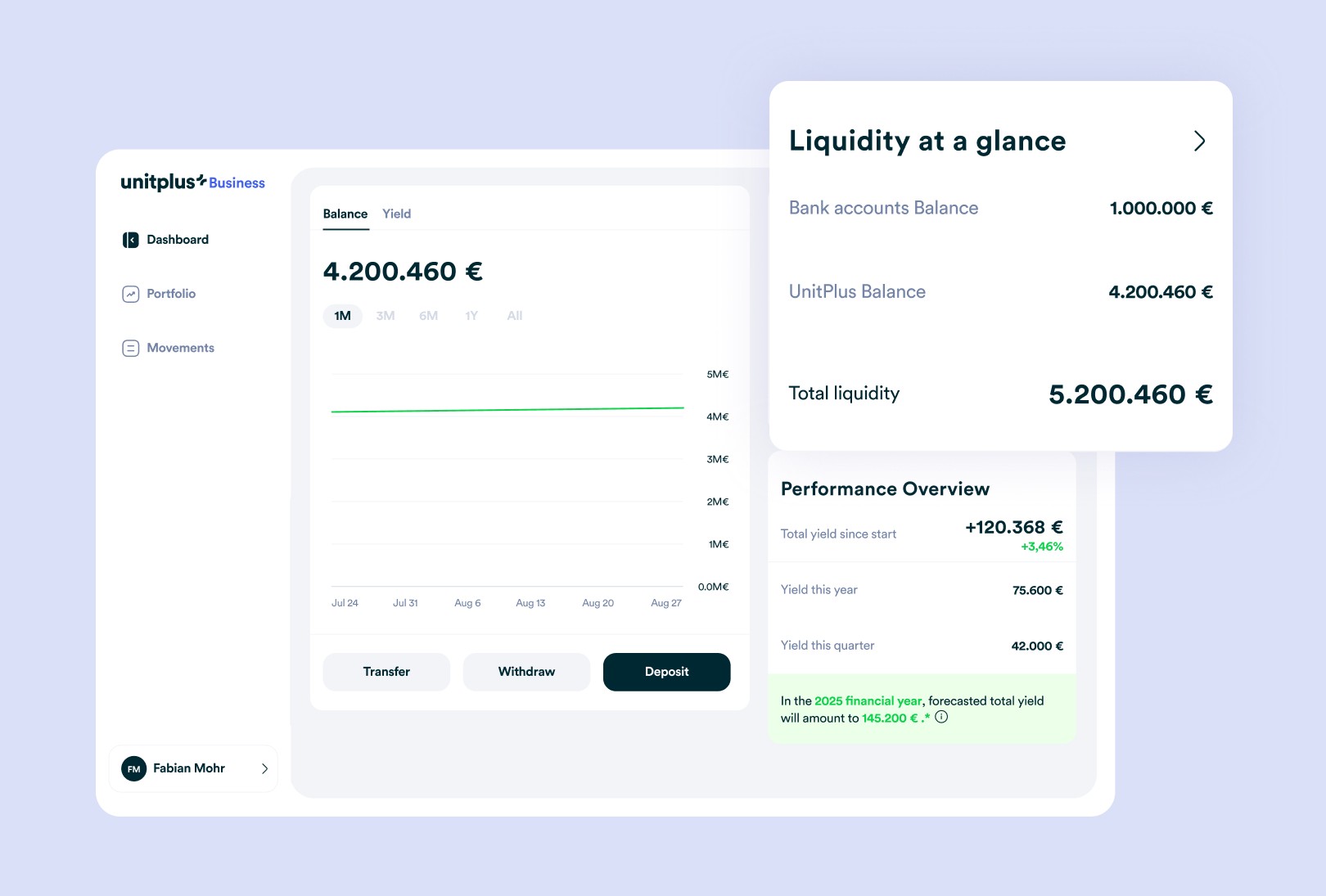 UnitPlus Business is the solution we’ve always wanted for our cash management: transparent, fair, digital, and convenient. No more lengthy negotiations with banks – just a clear investment with attractive returns in any interest rate environment. UnitPlus Business offers the perfect cash management setup with predictability and ease. I recommend every entrepreneur to switch to UnitPlus Business and take their cash management to the next level.