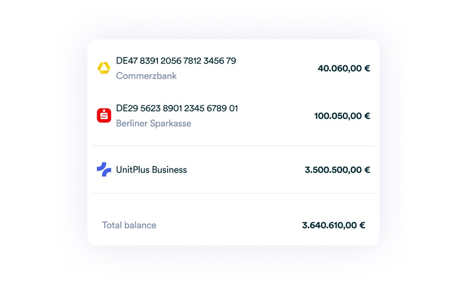 Connect your business accounts and monitor your liquidity in real-time. Transfer funds from your UnitPlus Business account back to your bank accounts at any time.