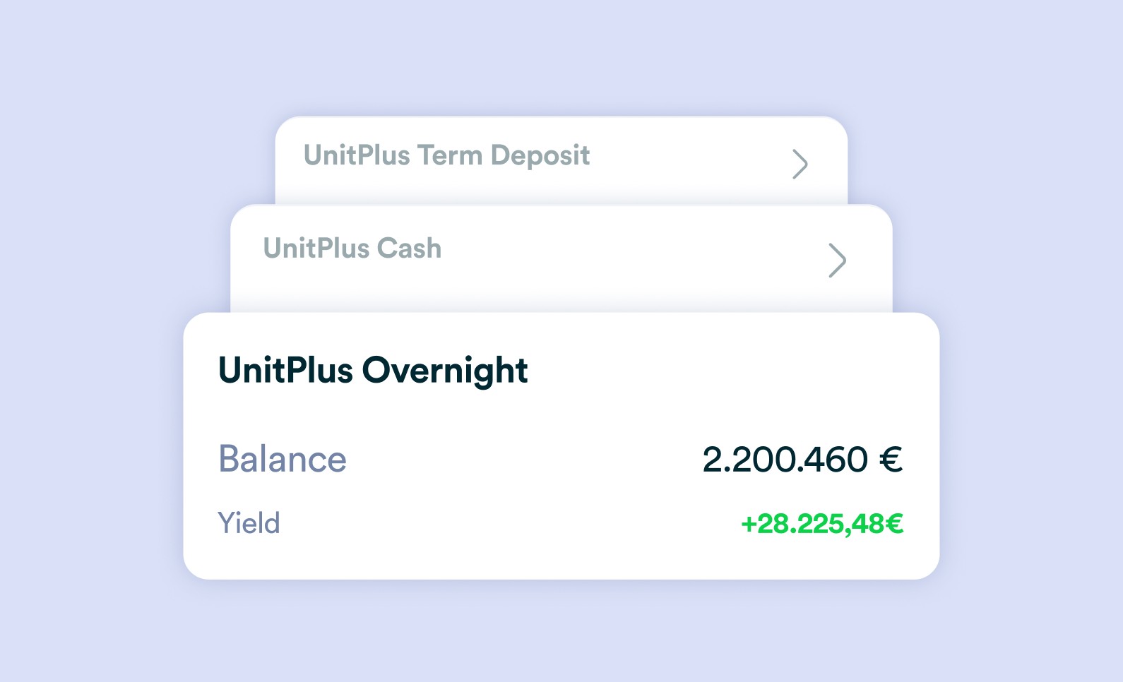 For companies looking to invest short-term liquidity, UnitPlus Overnight offers an attractive alternative to overnight deposit accounts. Interest rates are permanently above the ECB deposit rate. No minimum term and no limited promotional period.